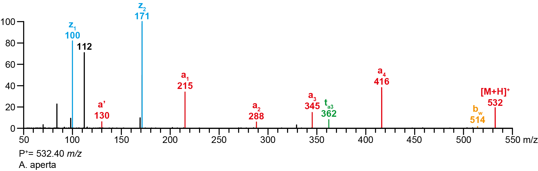 | Data | 532.39696 | | A. aperta | Fauna Laboratories Ltd., KAZ | Y. M. Forster |